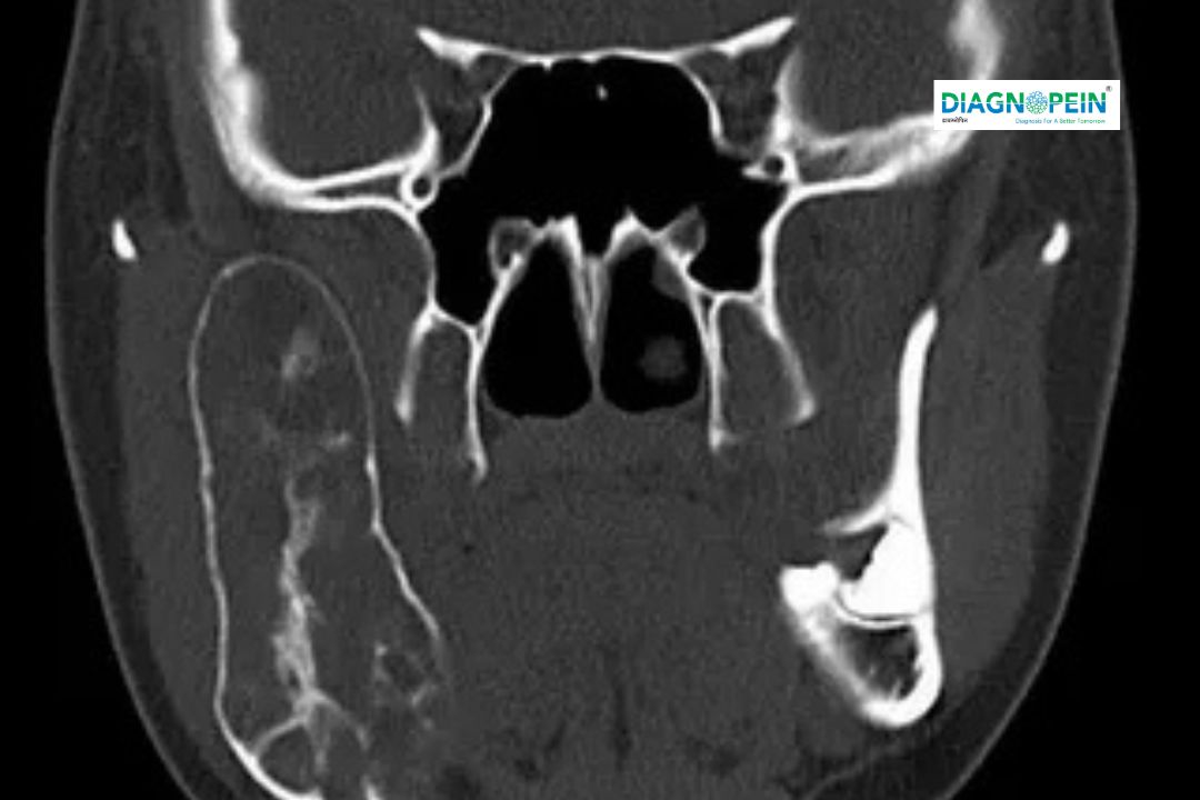 CT (Computed Tomography) of the mandible is a non-invasive diagnostic test that uses X-rays to create cross-sectional images of the jawbone. The 3D reconstruction feature digitally models these images to visualize complex bone anatomy from multiple angles. This helps clinicians identify problems that might not be visible on routine X-rays.
