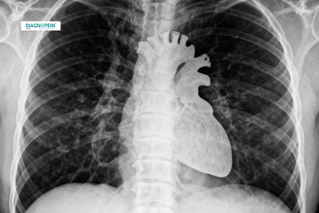 At Diagnopein, we prioritize patient comfort and accuracy. During the X-Ray Chest AP View, the patient is typically positioned lying on an examination table or sitting upright. The X-ray beam passes from the front (anterior) of the chest to the back (posterior), capturing an image of the heart, lungs, ribs, and diaphragm.